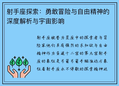 射手座探索:勇敢冒险与自由精神的深度解析与宇宙影响