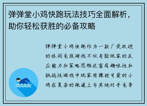 弹弹堂小鸡快跑玩法技巧全面解析,助你轻松获胜的必备攻略