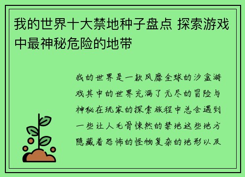 我的世界十大禁地种子盘点 探索游戏中最神秘危险的地带